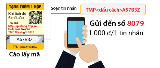 Cách thức thực hiện hết sức đơn giản: Quý khách vui lòng cào nhẹ lớp tráng bạc của tem chống hàng giả được dán trên mỗi hộp sản phẩm để lấy mã số tích điểm. Sau đó tiến hành tích điểm và đổi quà theo hướng dẫn dưới đây.